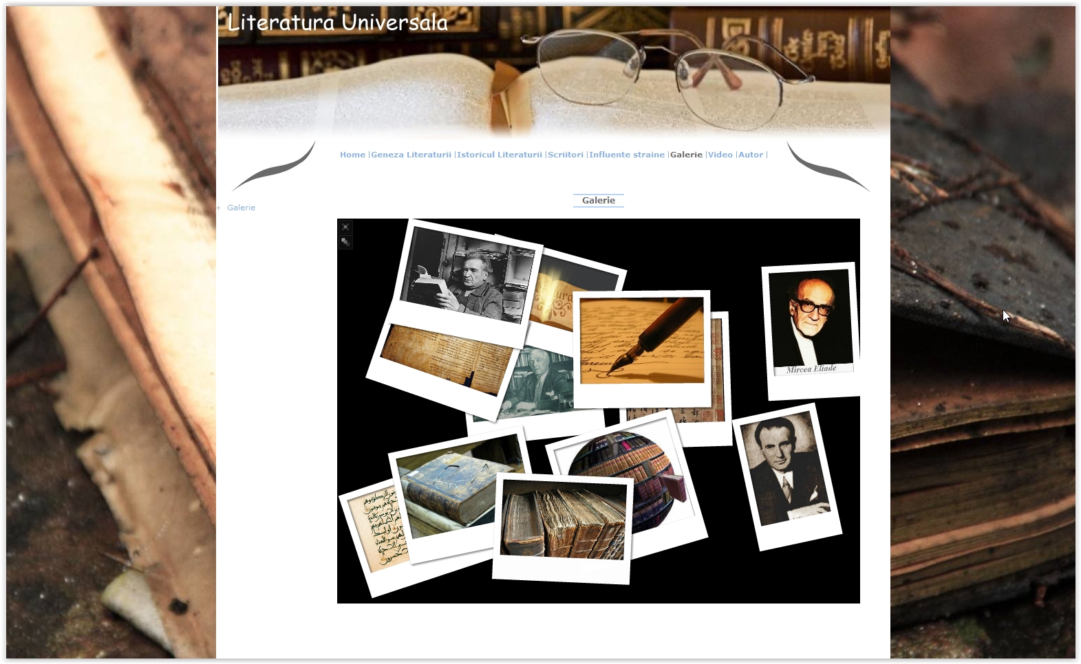 Pe langa informatiile prezentate, in proiect se mai gasesc o galerie foto cu scriitori ai literaturii uniersale dar si un scurt filmulet legat de literatura universala. Pe multe din paginile proiectului se gasesc mici animatii in flash care imbunatatesc design-ul si ii fac paginile proiectului "vii".