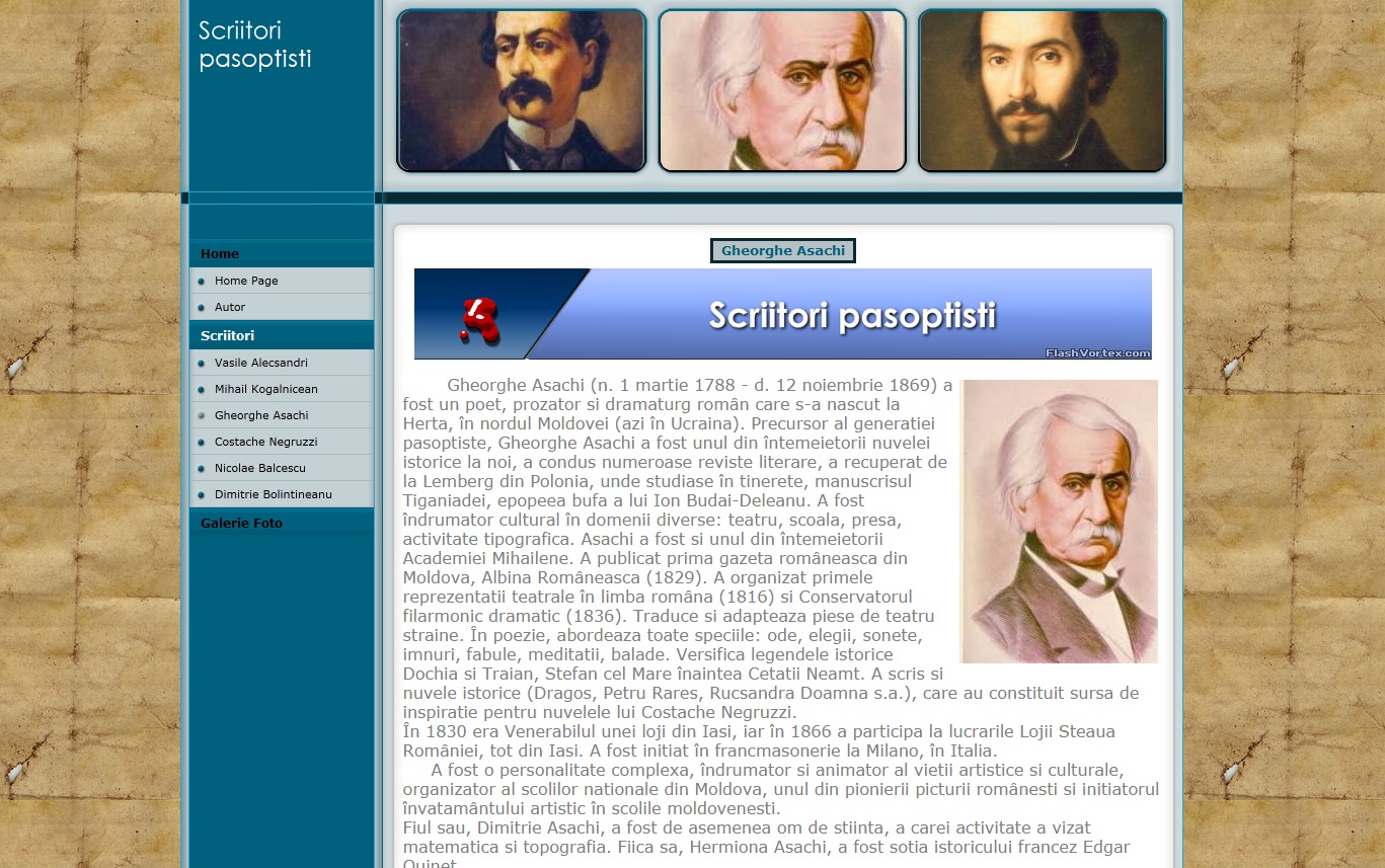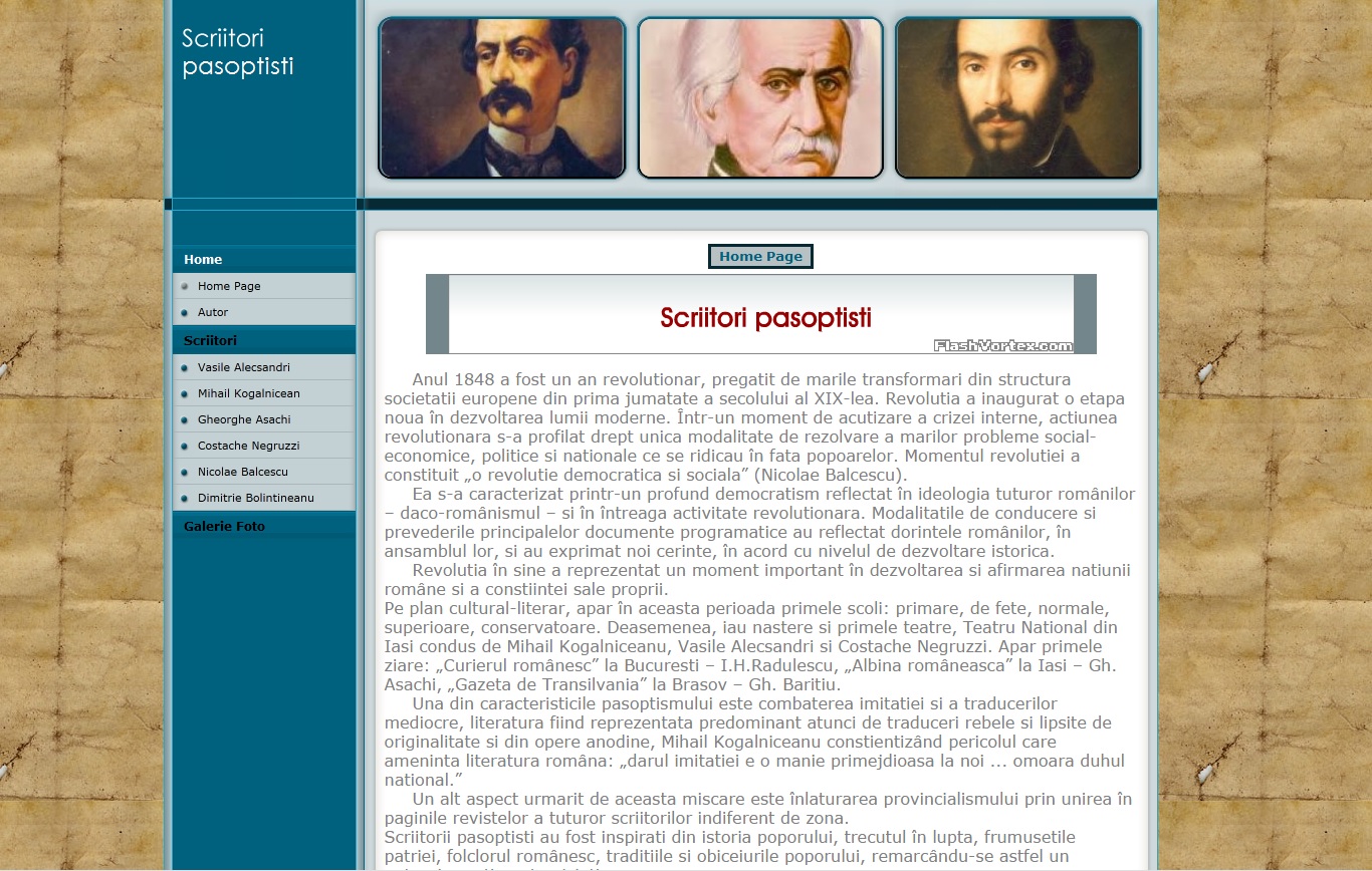 Atestat informatica Scriitori Pasoptisti face referire la scriitorii anului 1848 a caror scrieri si implicare au schimbat istoria Romaniei. Printre celebrii scriitori pasoptisti amintim de Vasile Alecsandri, Mihail Kogalniceanu, Gheorghe Asachi, Costache Negruzzi, Nicolae Balceascu si Dimitrie Bolintineanu.