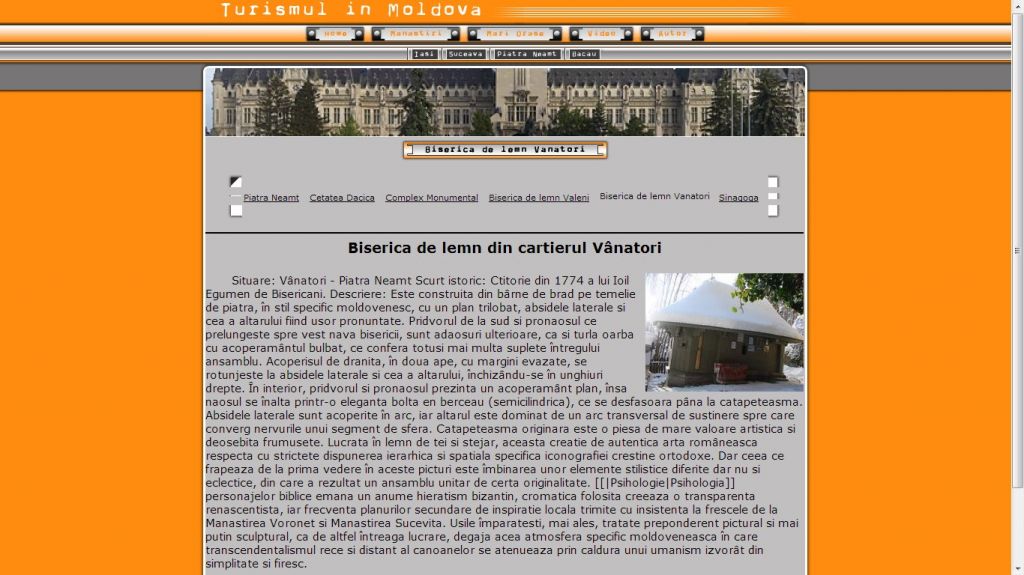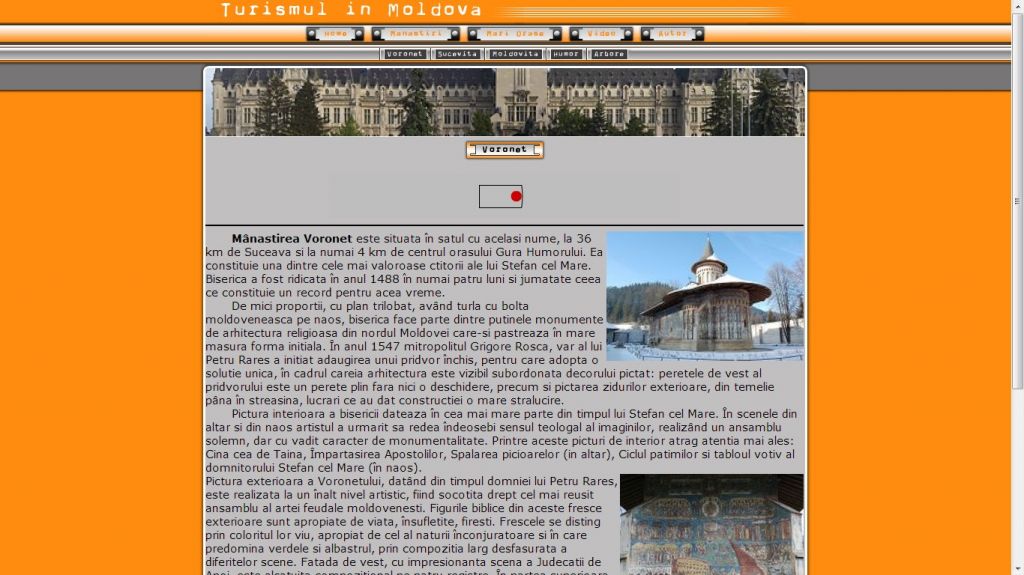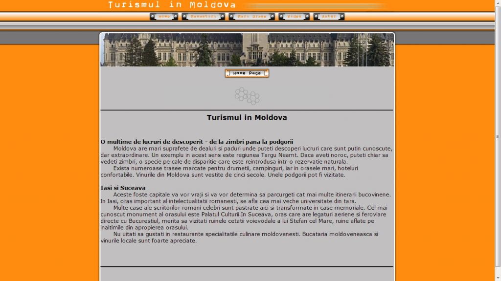 Zona Moldovei este una din regiunile tarii care detine foarte multe obiective turistice. Tot aici gasim si zona cu cele mai multe manastiri. Acest atestat la informatica in HTML are drept tema turismul in Moldova.Proiectul HTML prezinta informatii despre principalele atractii turistice din Moldova, manastiri, muzee, cetati, principalele orase: Iasi, Suceava, Piatra Neamt, Bacau. Pe langa imagini si suportul informativ acest atestat contine si un video.