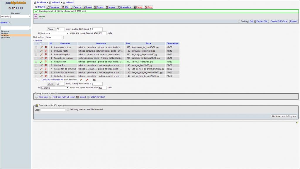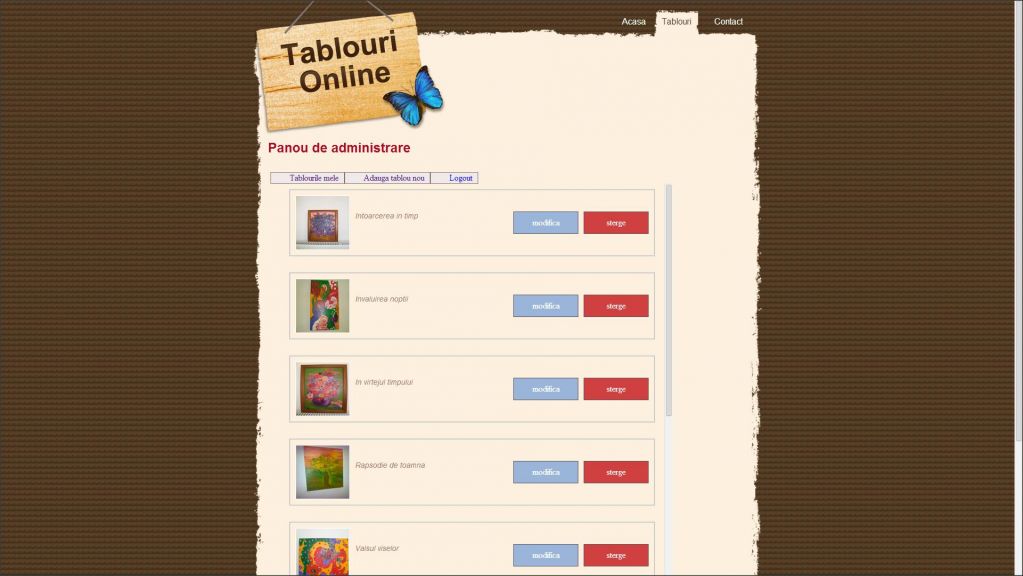 tablouri, galerii, arta, pictura, magazin de tablouri, galerie de tablouri, atestate php-mysqlDescriere atestat